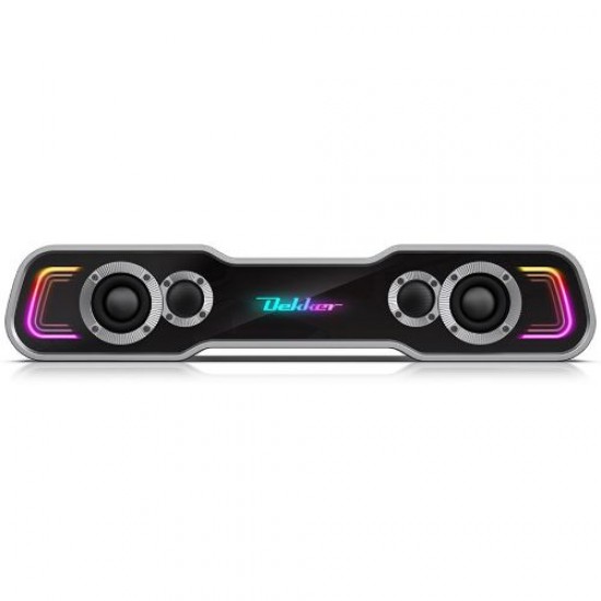 PC사운드바 / 2ch / 출력:6(3Wx2)W / 50Hz~20kHz / 4Ω / 감도:80dB / 커넥터:마이크단자,AUX / 블루투스 / 블루투스 v5.4 / LED라이트 / USB전원 / 크기(가로x세로x깊이):440x88x85mm